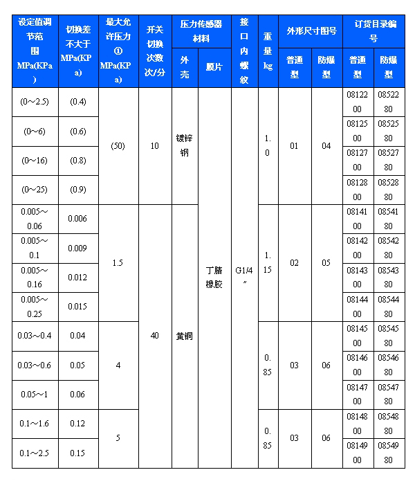 500/7D防爆壓力開關采用膜片式傳感器,可用于空氣等中性氣體和水、液壓油、潤滑油、輕燃油等液體介質。500/7D防爆壓力開關的設定值可調,調節范圍0~2.5MPa。