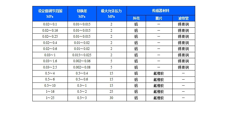 TLD-PC壓力控制器是采用膜片式傳感器,為雙刀雙擲壓力控制器,兩組微動(dòng)開(kāi)關(guān)的切換值可分別設(shè)定;可用于空氣、氣體、水、蒸汽、制冷劑、油等液體介質(zhì)。控制器的設(shè)定值可調(diào),調(diào)節(jié)范圍0.01~25MPa。
