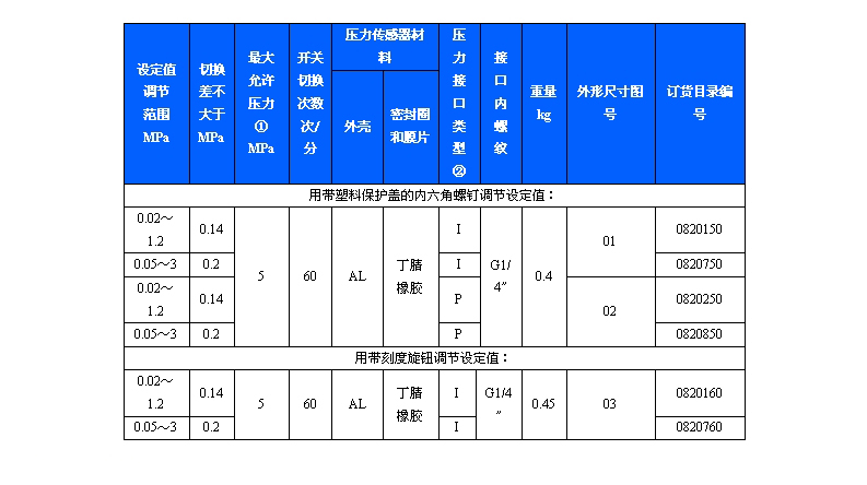規格:500/8D壓力控制器切換差不可調