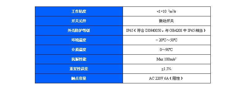 主要技術性能: